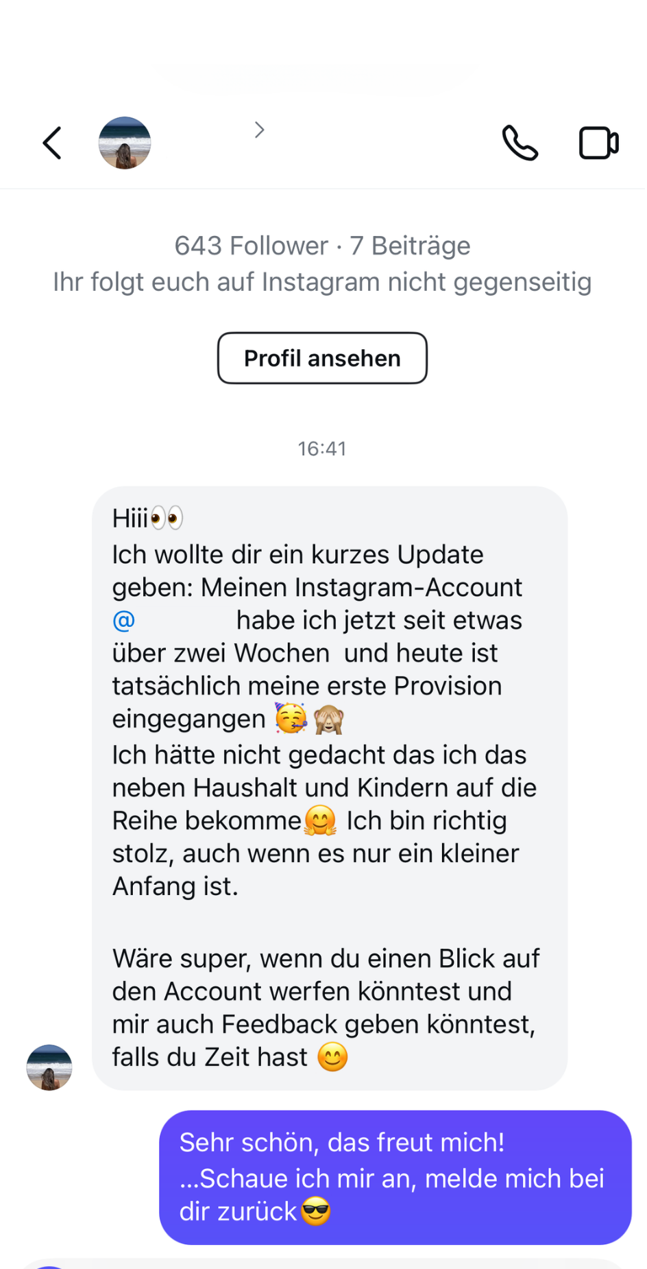 Kein blauer Haken. Kein Rampenlicht. Kein Stress mit Werbekosten. Du brauchst nur ein Thema, das Menschen interessiert und ein System, das für dich verkauft Ob Motivation, Lifestyle, Ernährung, Humor oder Zitate: Mit der richtigen Themenseite baust du organisch Reichweite auf, ohne dich zu zeigen. Content, wie Reels oder Slides, plant die KI (Klickverfahren). Wie du solche Seiten findest, aufbaust und optimierst – das zeigt dir mein Provisionscode Schritt für Schritt. Smart platzierst du digitale Produkte genau dort, wo sie wirken. Ohne aufdringlich zu sein. So entsteht ein leises, aber funktionierendes System, das 24/7 für dich arbeitet.